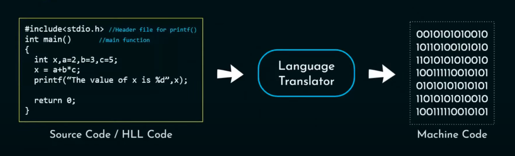 La fase di traduzione di un linguaggio di alto livello ad un codice comprensibile per un calcolatore (linguaggio macchina) viene eseguita da un traduttore di linguaggio. Esistono due tipi di traduttori: